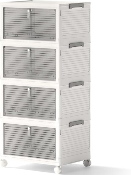 Homsorout Closet Organizers Bins 6 Packs – Large Closet Shelf Organizer with Handles, Fabric Trapezoid Storage Bins, Collapsible Storage Cubes for Clothes, Towels, Light Gray