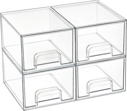 Vtopmart 4 Pack Small Clear Stackable Storage Drawers,Acrylic Bathroom Makeup Organizer,Plastic Storage Bins For Vanity, Undersink, Kitchen Cabinets, Pantry, Home Organization