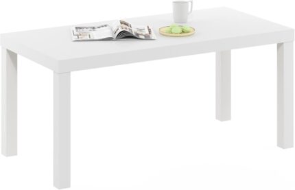 Furinno CLASSIC Coffee Table, Modern Rectangle Coffee Table with 1.8″ Triple Thick Tabletop, Side Table, Toolless Assembly, for Living Room, Home Office, White