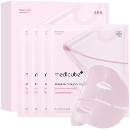 medicube Salmon DNA PDRN pink collagen jelly gel mask | overnight face mask for glass glow skin- elasticity, hydrating, firming and moisturizing | korean skincare, 28g, 4ea