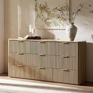 Be the first to review “Fluted 9 Drawer Dresser for Bedroom, 63″ Wide Modern Chest of Drawers with Faux Marble Top, Curved Corners Design, Wooden Dresser TV Stand with Organizer Storage for Living Room (Natural Oak, 63″ W)” Cancel reply
