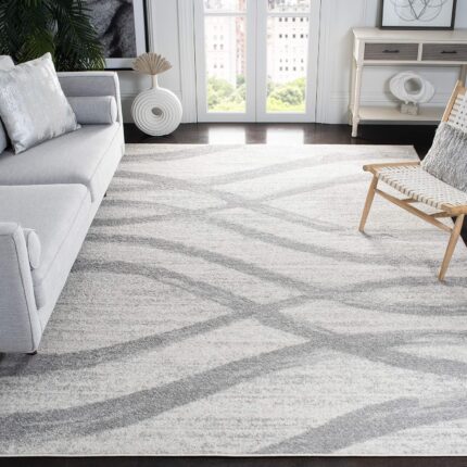 SAFAVIEH Area Rug 8×10 – Adirondack Collection – Large – Cream & Grey, Modern Wave Design, Non-Shedding & Easy to Clean, Ideal for Living Room, Bedroom, Dining Space (ADR125C)